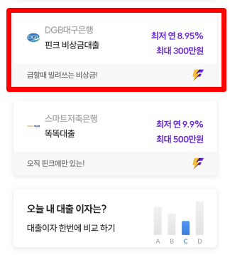 핀크는 앱을 통해 은행입출금을 거래하고 다양한 금융기관과의 제휴를 통해 대출상품을 판매하는 곳입니다. 다양한 은행의 대출을 비교 후 실행할 수 있다는 장점이 있는데요. 오늘 소개할 핀크 비상금대출은 대구은행과 연계한 상품으로 핀크 앱에서 간편하게 신청이 가능합니다.